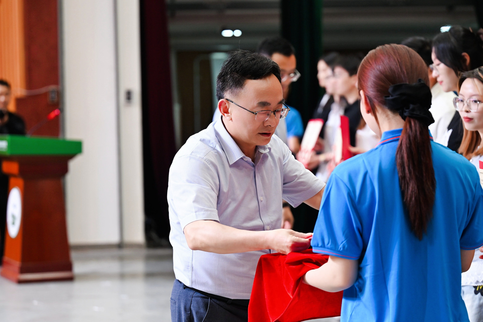 典礼聘任曲齐等 13 名毕业生担任 2025 届校友年级理事,副院长徐军为他们颁发聘书,并呼吁校友们持续关注学校和学院发展,为母校建设建言献策。